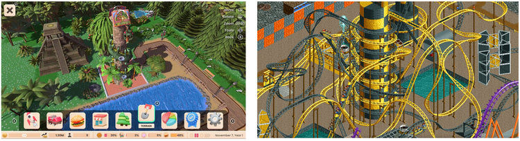 The resulting game, released in 1999, is a simulation masterpiece that challenges players to complete park-building and management scenarios. Given total control over their parks, players have to strategically place rides, shops, food stalls, and even bathrooms, and hire staff in order to maximize visitor happiness and park profits. The most magical part of RollerCoaster Tycoon is of course the dozens of coasters you can build and the total control over park design.