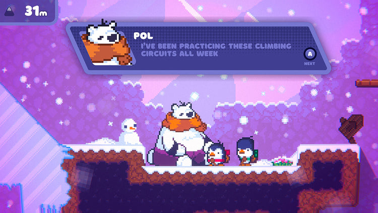 While designed as a hilarious two-player challenge, you can also enjoy the game solo. Climb the mountain as Greg the penguin, who must use a rock on a rope (named Jeff), instead of a penguin pal, to swing his way uphill. For the craziest climbers, Bread & Fred includes a speedrun mode, so you can compete and be crowned the best penguins on the planet.