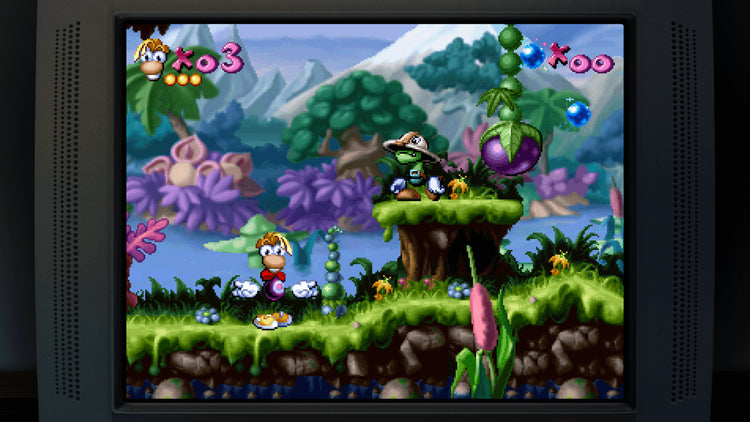 Developed by Digital Eclipse in collaboration with Ubisoft Montpellier, this anniversary release celebrates three decades of Rayman with five versions of the original game, including MS-DOS, PlayStation, Atari Jaguar, Game Boy Color, and Game Boy Advance. Perform Rayman’s signature punch and helicopter hair glide through colorful worlds, navigating the magical Dream Forest and the musical chaos of the Band Lands to rescue Electoons and defeat Mr. Dark.