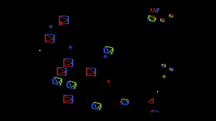 The first-ever home console port of the original 1982 vector-based arcade game, now for the 7800+. The unique two-player mode tethers two ships together for interdependent action.